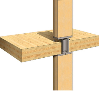 Lajes de piso CLT com colunas de Glulam e conectores de aço