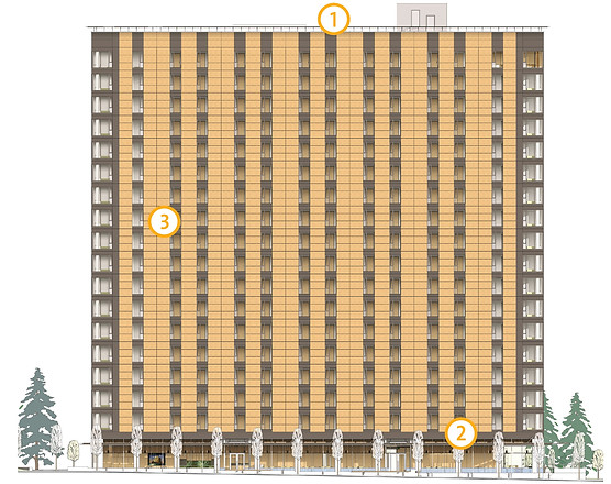 GLT é usado para a maioria dos colunas estruturais entre os níveis 2 e 18.