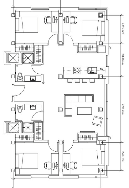 Os painéis têm 169 mm de espessura, 2,85 m de largura e quatro comprimentos diferentes, com até no máximo 12 m de comprimento. Existem 29 painéis por nível e a maioria são exclusivos devido às configurações de aberturas mecânicas, hidráulicas e elétricas pré-cortadas.